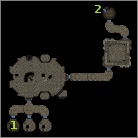 Entering the hunting lodge through the front door (#2) would be suicide, so Vico suggests trying to find an alternate way in along the shore. Make your way north east until you find an old rowboat (#3). The boat itself is unusable, but it's possible to swim across the moat to the castle. Since you're the only one who knows how to swim, it's your job to get across and try to find a way in for the rest of your party. Once across (#4), use the weeds to climb up the wall. You'll begin making some progress, but eventually slip and fall, leaving you unconscious. When you awake, you'll find yourself locked in a cell in the bowels of the Hunting Lodge, and missing all of your weapons.